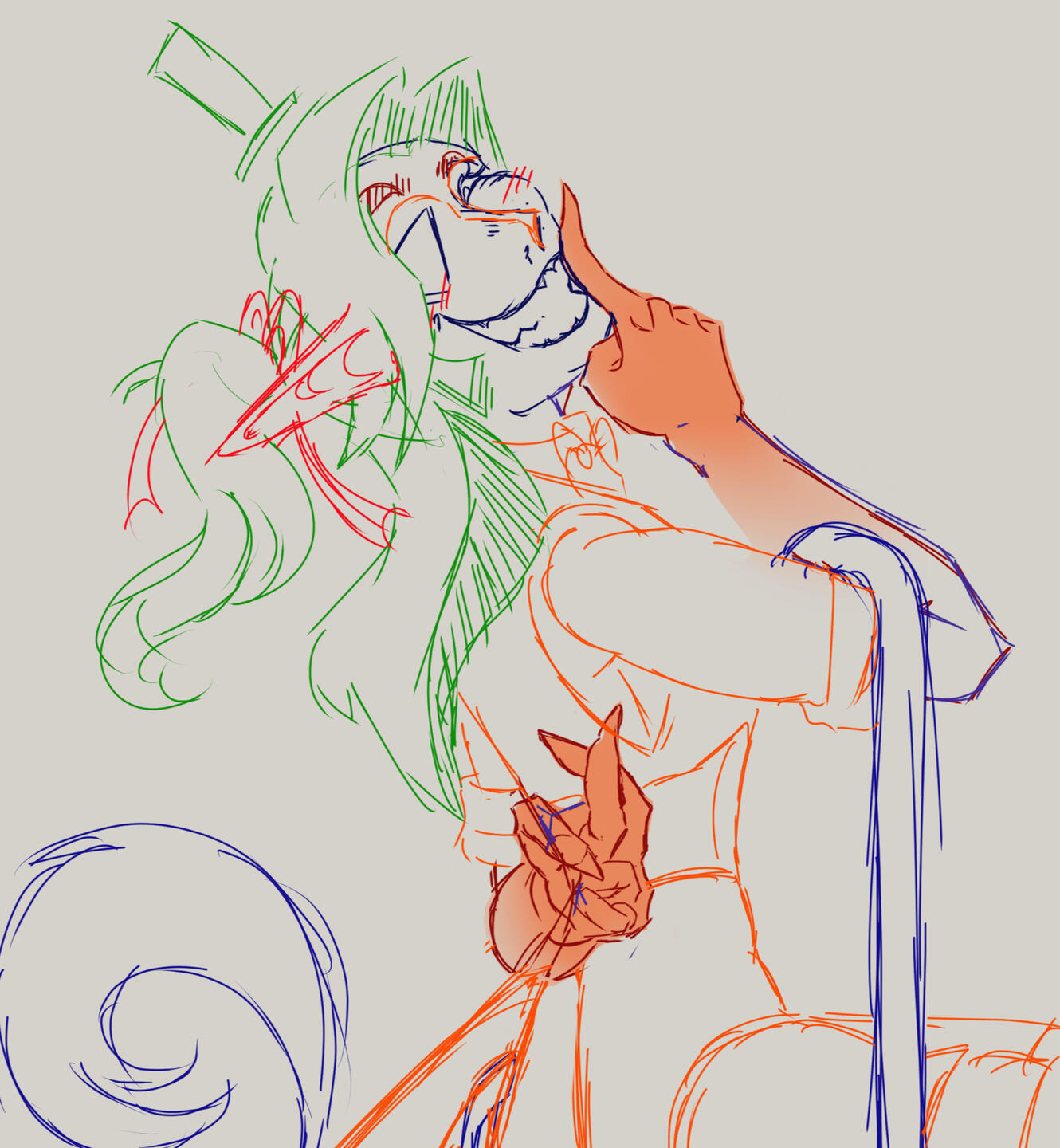 if you need any changes, please let me know during the sketch or flat colour phase. you have unlimited revisions in these stages, but once i move on to shading, changes will incur additional fees.